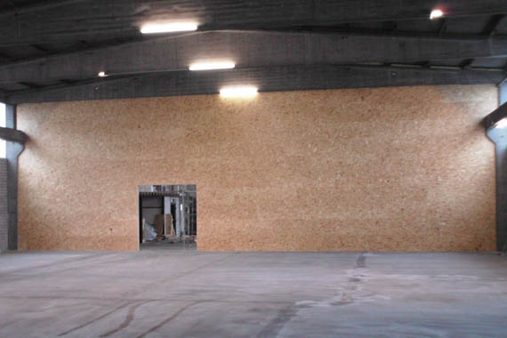 Montage einer Trennwand zur Teilung der Halle in Lager und Verkaufsraum.