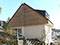 Fassadendämmung mit Isofloc-Einblasdämmung. Fassadenbekleidung mit Rhombusprofil in Lärche.